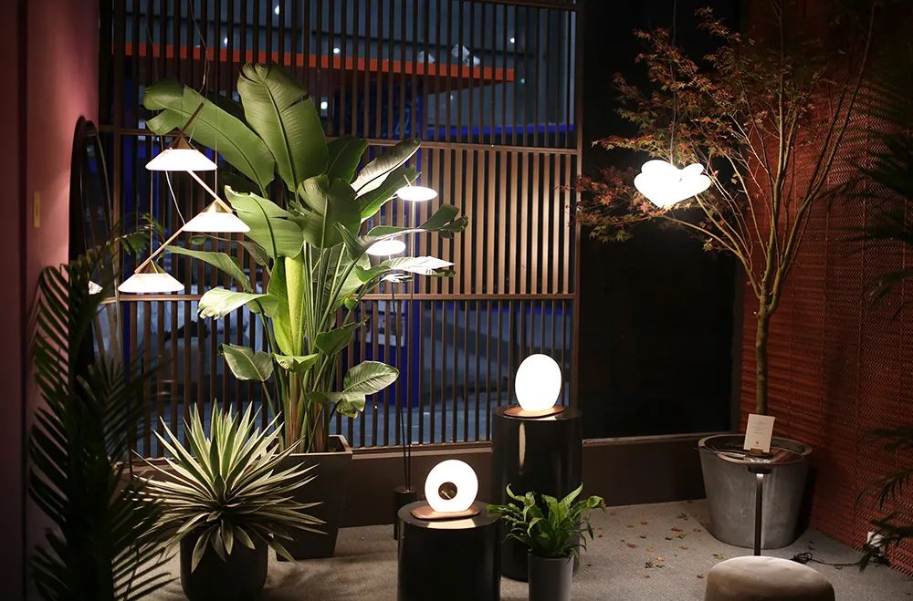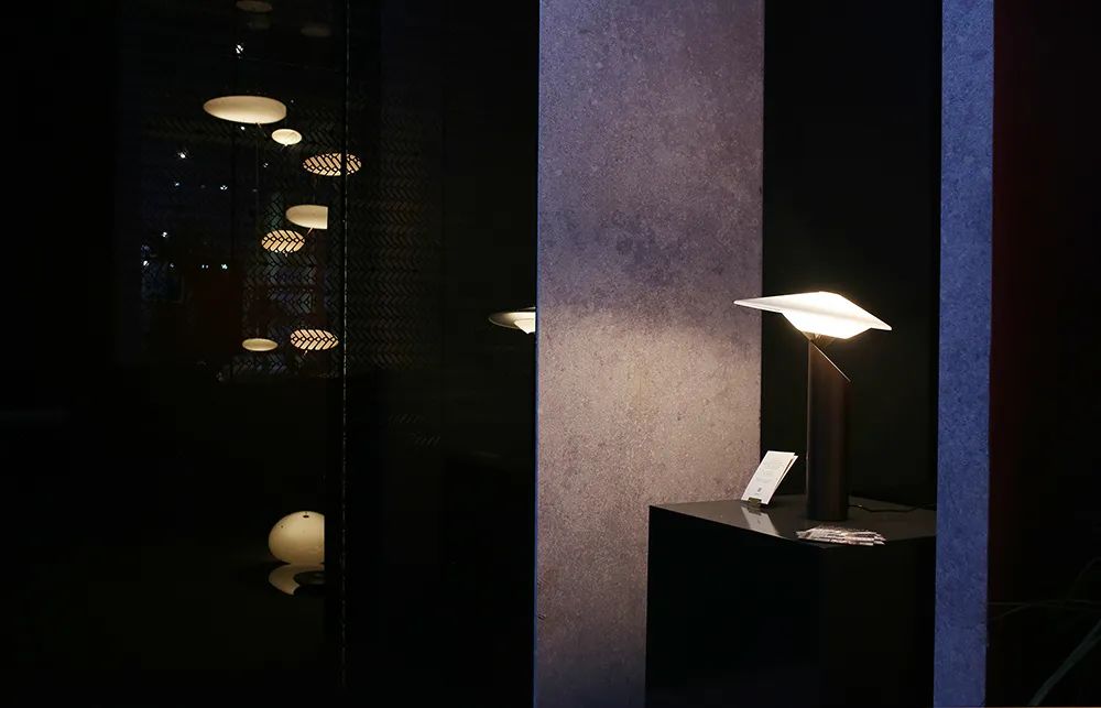 获奖的灯具们是现场的点睛之笔。。。。展馆入门右手边,,,,是曾拿下2019年度法国Muuuz国际设计大奖的方寸壁灯。。。通过光在不同形态上的表达,,,,形成虚实结合的「墙」,,,,是打卡出片的好点位。。