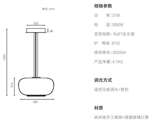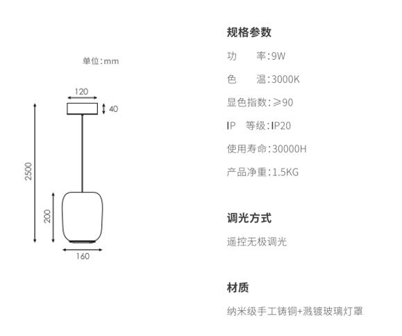 产品简介:手工吹制高硼硅玻璃,,,,圆润柔和;在内部的上路光透过玫瑰金色网格铸铜件投射出类似烛火的效果,,在空间里显得更加灵动,,,外层玻璃采用溅镀金属质感,,自下而上渐消,,,同时镜面镀层折射环境光线,,,,使产品更加轻盈通透不压抑,,下路光采用直下光,,满足1.5米圆桌面充足照明。。同时设计有防眩格栅,,,,桌面边缘的视线高度不会有直接光线照射到,,体验舒适。。